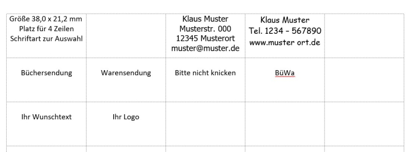 Menge: 650 Etiketten auf 10 DIN A4 Bogen im Großbrief mit Paprückwand